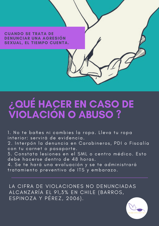 b. ¿Qué hacer en caso de sufrir violencia o abuso sexual? Pasos a seguir en Chile, (lee más presionando el link).