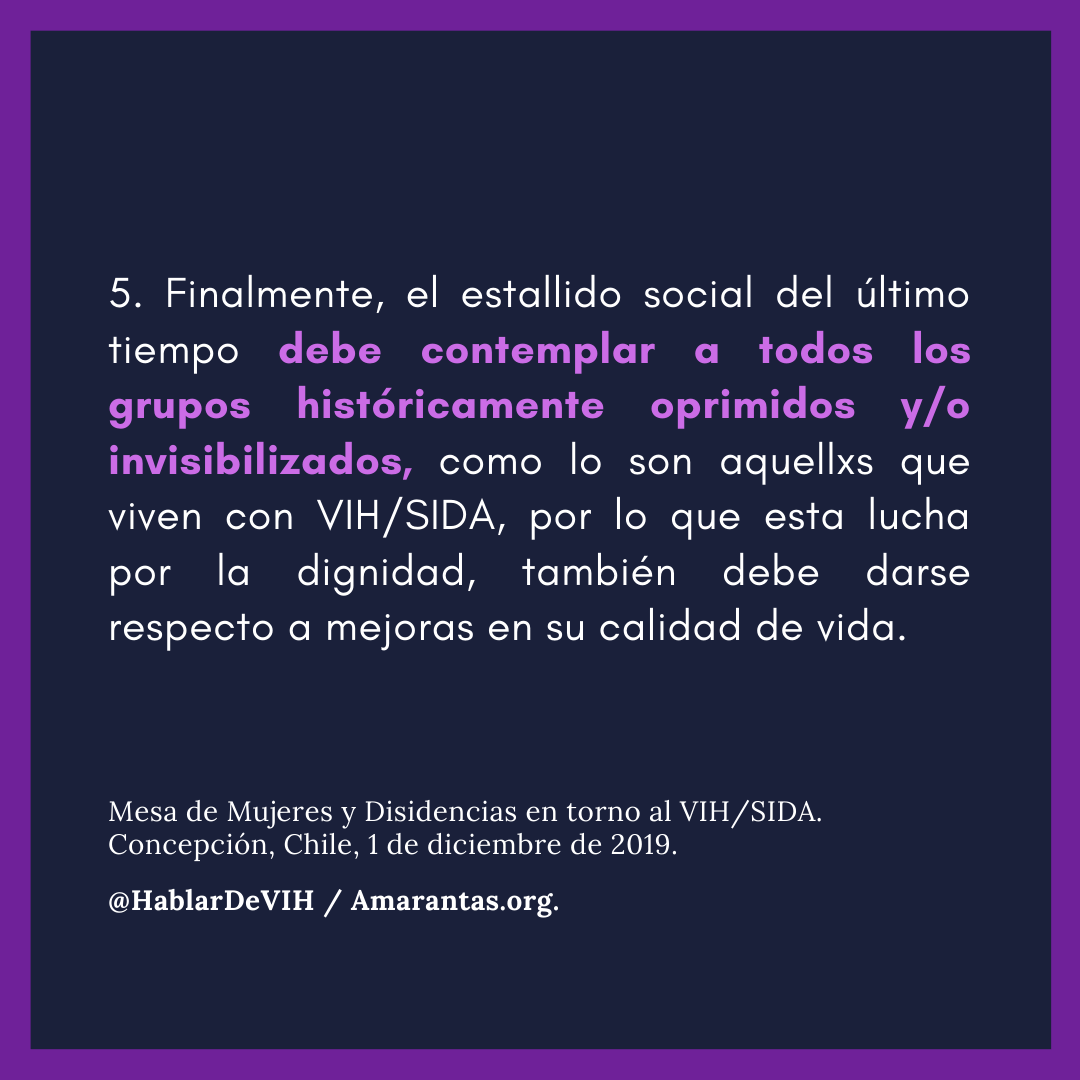 6 Previous Next Publicado 1 diciembre, 2019 en 1080 × 1080 en Declaración de la Mesa de Mujeres y Disidencias en torno al VIH/SIDA