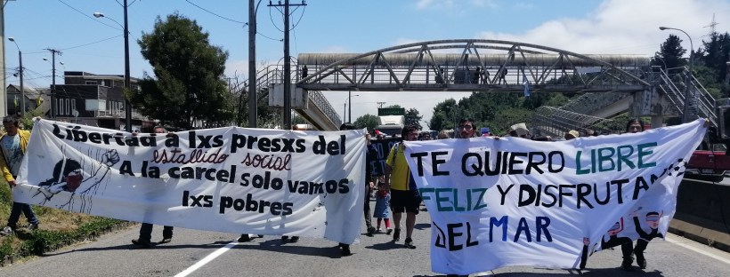 Luego del punto de prensa, familiares, amigos y amigas de los presos y presas políticos, además de organizaciones sociales, salieron a tomarse las calles, marchando desde la Cárcel El Manzano, hasta la Fiscalía de Concepción.