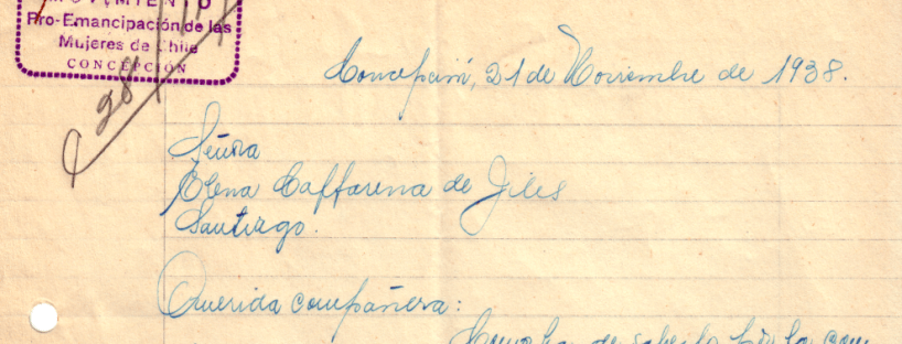 El Movimiento Pro Emancipación de las Mujeres de Chile -MEMCH- se fundó el 11 de mayo de 1935 en la ciudad de Santiago. Fue una organización autónoma constituida por mujeres de diversos grupos sociales y feministas -desde 1935 a 1953-, cuyo interés mayor era lograr, desde aquella época, la emancipación integral, y en especial, la emancipación económica, jurídica, biológica y política de la mujer. Desde su creación se propuso formar comités locales a lo largo de todo el país para trabajar desde distintos territorios y formas sus objetivos principales. Estos comités tuvieron un importante intercambio epistolar desde y entre los comités locales hacia la central ubicada en la capital. En la región del Biobío (y Ñuble) el MEMCH tuvo un despliegue importante, y donde en algunos casos los comités alcanzaron un numero significativo de socias. El Movimiento estuvo presente en Concepción, Los Ángeles, Coronel, Lota, Talcahuano, Arauco, San Rosendo, Chillán, Isla Santa María, Laraquete, Arauco, Curanilahue, Talcamávida, Mulchén y, en algunos casos, con subcomités locales1.