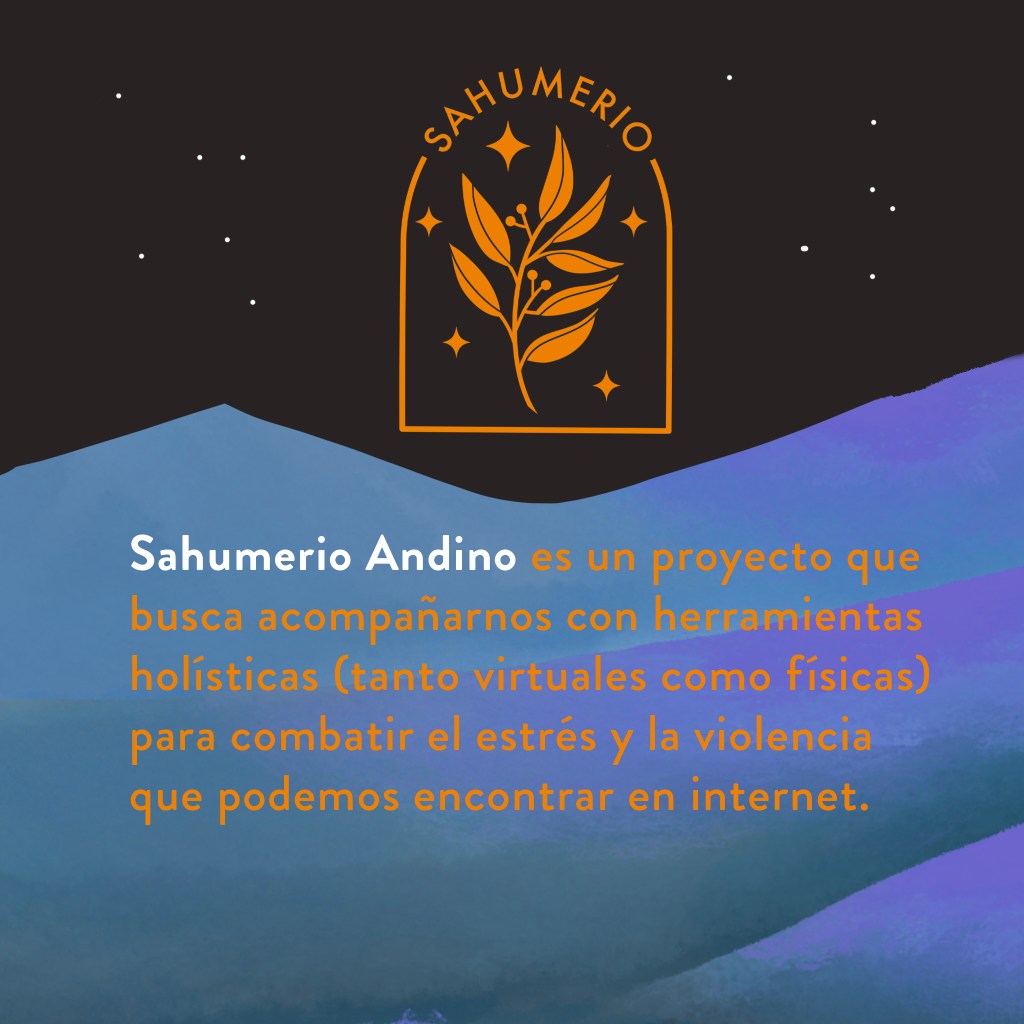 Sahumerio Andino es un proyecto que busca acompañarnos con herramientas holísticas (tanto virtuales como físicas) para combatir el estrés y la violencia que podemos encontrar en internet.